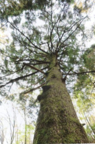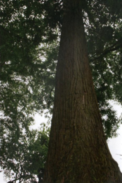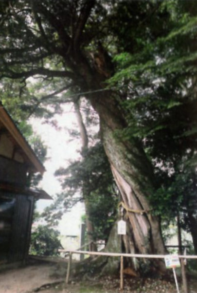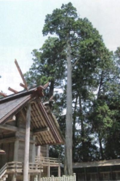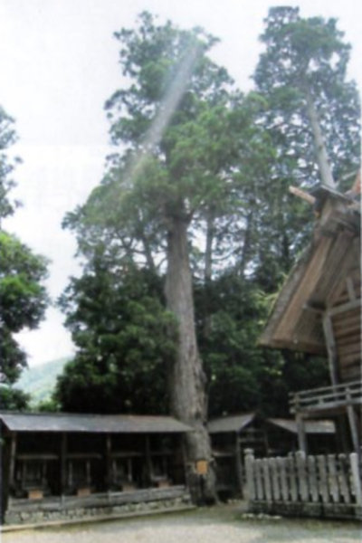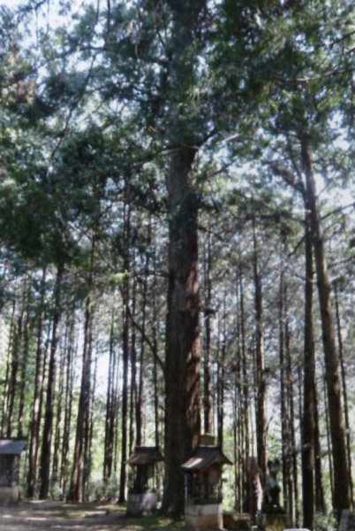 | 29-2 豊受大神社のスギ(龍灯のスギ) 宮川右岸に鎮座する元伊勢外宮(豊受大神社)の森がある丘は、舟形にのびる丘で船岡山と呼ばれている。内宮にも立派な同名のスギがある。