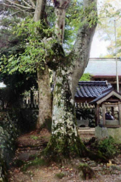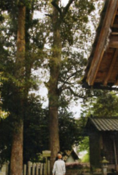 | 15-2 生野神社のフジキ 生野神社境内外周に生える巨木である。「大江山生野のみちの遠ければまだふみもせず天橋立」の歌で著名な山陰道生野宿の近郊に位置する。神社はかつては背後の山上に鎮座していたが、街道を往来する大名・武士を見下ろして不敬であると山麓に遷されたと伝えられる。