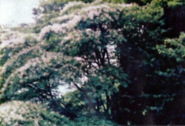 | 26 仏性寺のユクノキ 仏性寺のユクノキは、府道9号線沿い及び谷入り口にあり、ほぼ毎年6月14〜15日頃に見事な花をつける。 別名ミヤマフジキと言う。葉は藤の葉とそっくりである。